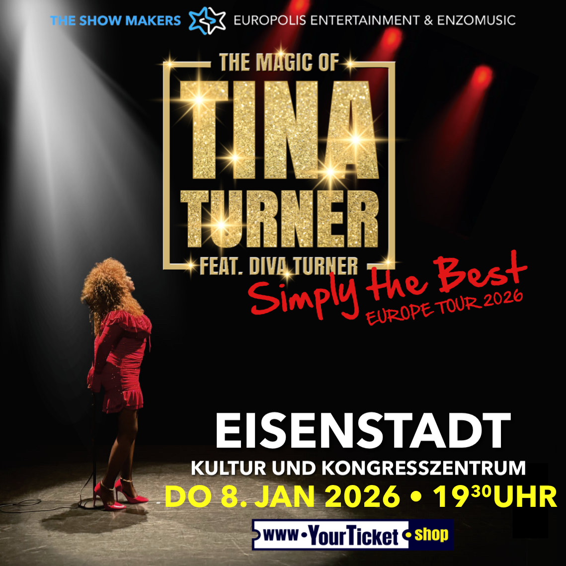 Tauchen Sie ein in die Welt von Tina Turner mit dieser einzigartigen Concert Tribute Show THE MAGIC OF TINA TURNER >>> featuring DIVA TURNER aus den Niederlanden (Finalist der großen TV Show „THE TRIBUTE“)! Unvergleichliche Power, Leidenschaft und Stärke, neben einer außergewöhnlichen Stimme, waren die Markenzeichen der mehrfachen Grammy Awards Gewinnerin TINA TURNER und sind es auch von DIVA TURNER! Lassen Sie sich mitreißen von Tina’s größten Hits wie "What's Love Got to Do With It", "Simply the Best" „ Nutbush City Limits“, "Private Dancer" u.v.m.! . DIVA TURNER haucht der Ikone und Queen des Rock 'n' Roll neues Leben ein und entführt Sie in eine Zeit voller Glanz, Glamour und unvergesslicher Musik. Feiern Sie mit uns das Erbe und die unübertroffene Bühnenpräsenz von Tina Turner in einer Show, die Sie mitreißen und begeistern wird. Treten Sie ein in die Welt der Rocklegende und lassen Sie sich von ihrer Musik verzaubern! Ein Abend voller Hits, Emotionen und einer außergewöhnliche Performance erwarten Sie.