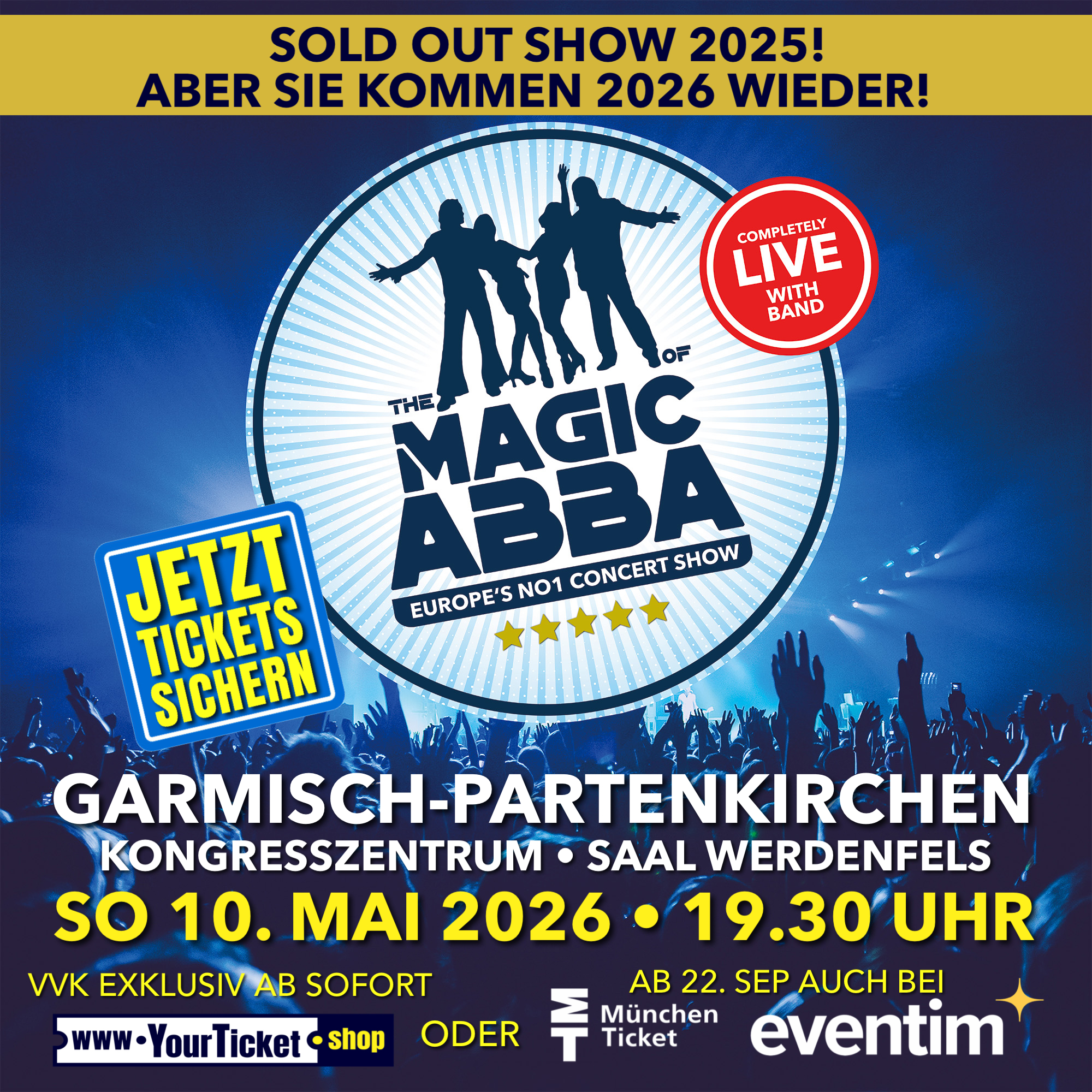 THE MAGIC OF ABBA ist so nah am einzigartigen ABBA Sound wie keine andere vergleichbare Show! Seit über 25 Jahren begeistern und begeisterten sie das Publikum in über 30 Ländern weltweit. Europa‘s NO1 ABBA Concert Show - jetzt noch größer und spektakulärer als je zuvor.