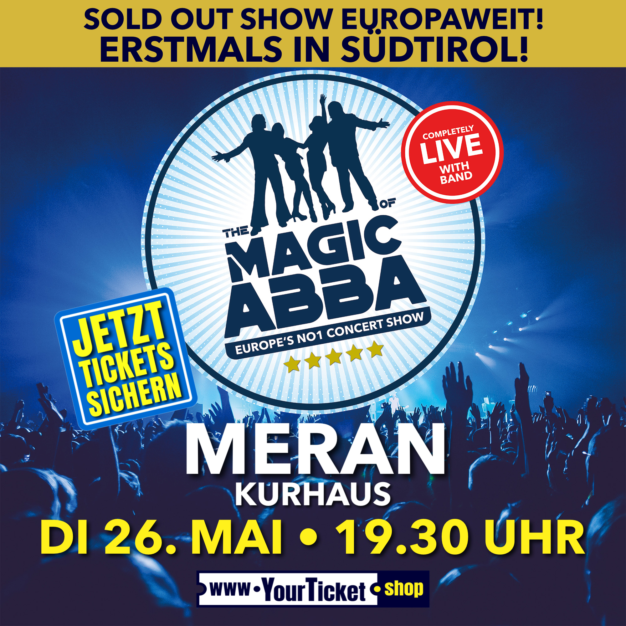 THE MAGIC OF ABBA ist so nah am einzigartigen ABBA Sound wie keine andere vergleichbare Show! Seit über 25 Jahren begeistern und begeisterten sie das Publikum in über 30 Ländern weltweit. Europa‘s NO1 ABBA Concert Show - jetzt noch größer und spektakulärer als je zuvor.